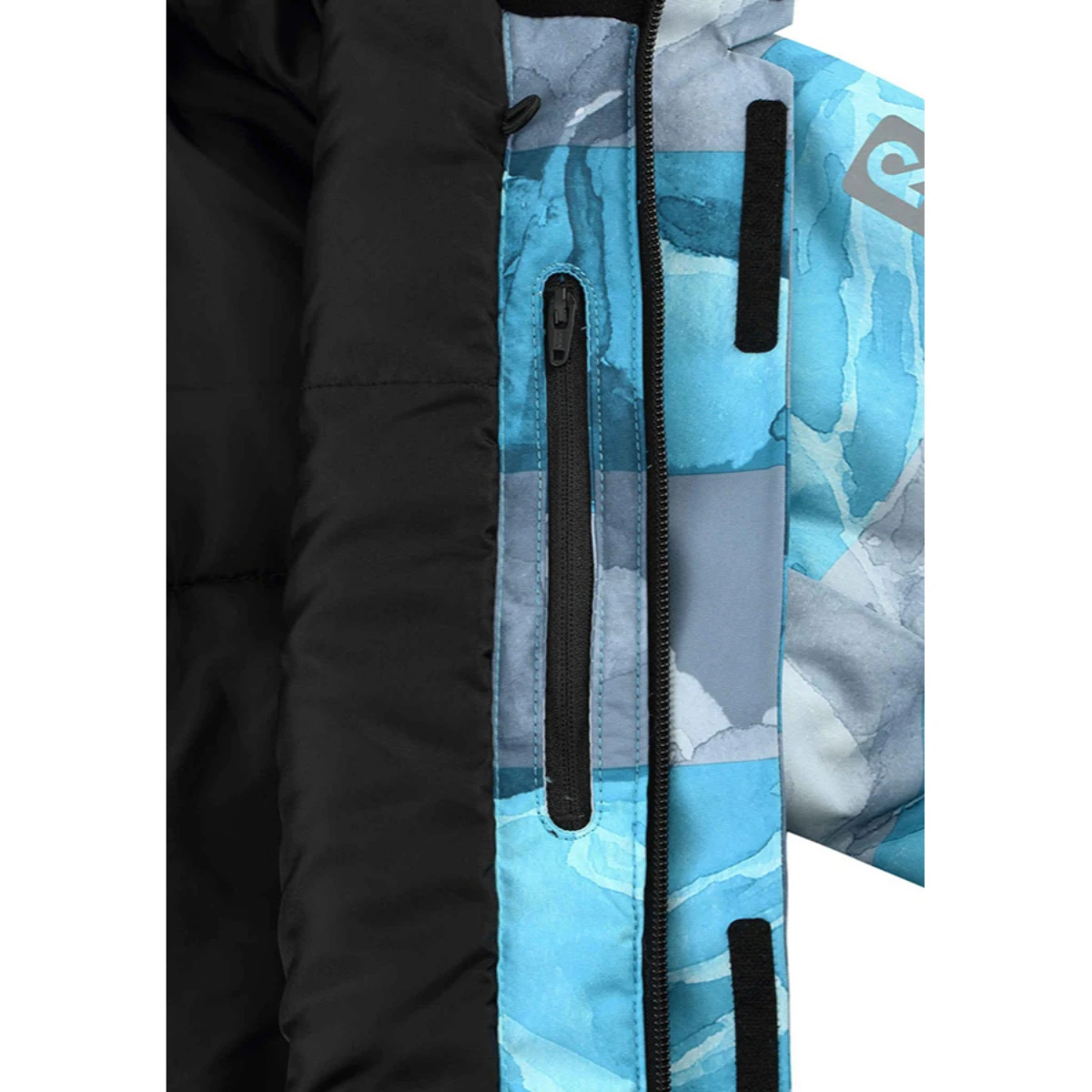 This is a functional kids’ waterproof winter jacket. The technical material is wind-blocking as well as breathable and repels water and dirt. All the seams are sealed for a waterproof finish. The smooth polyester lining makes dressing easier and feels comfortable when worn over warm layers.